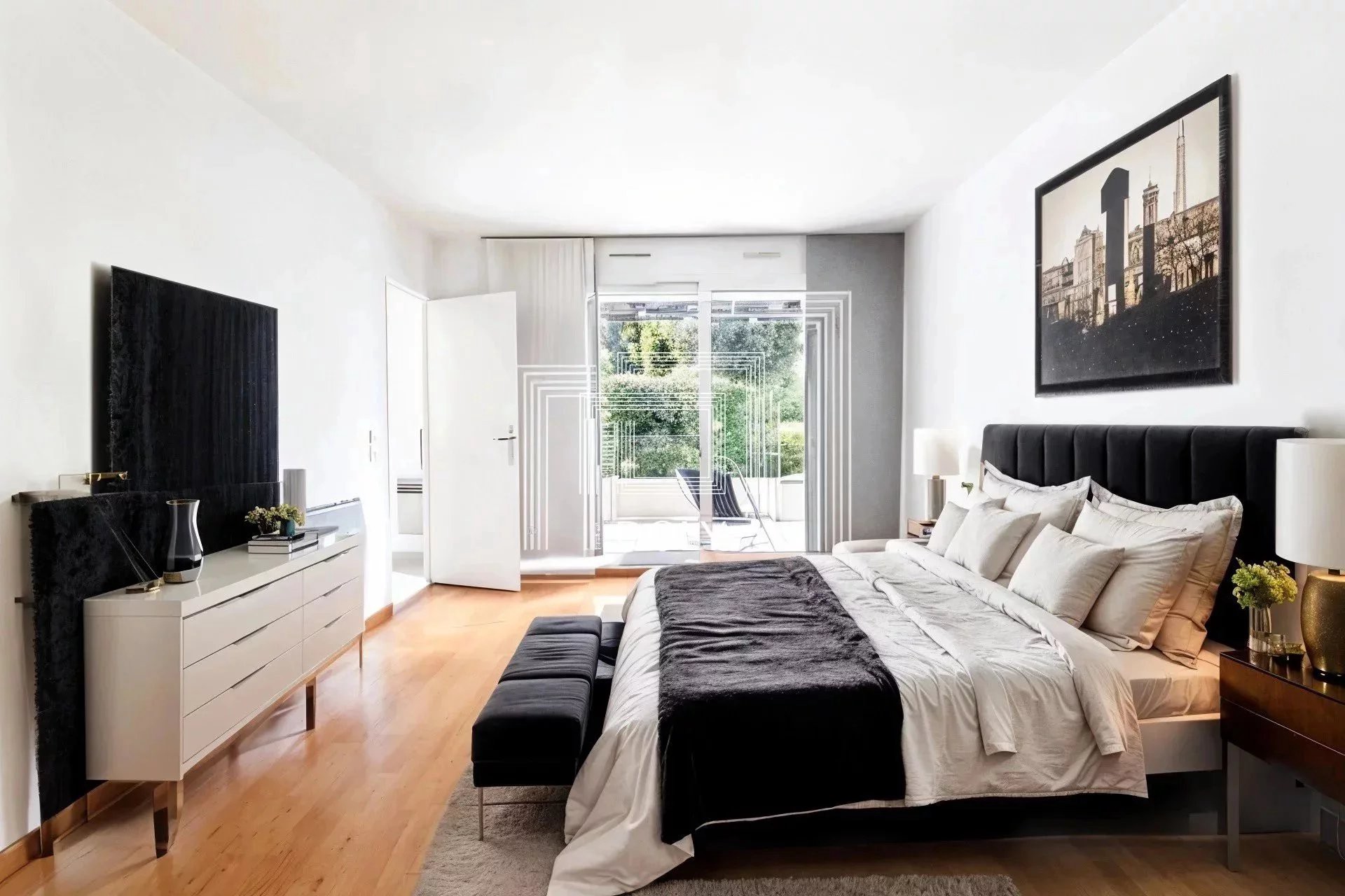 Dès l’entrée, vous serez sous le charme des volumes et de la luminosité dont il bénéficie grâce à ses grandes baies vitrées et à sa triple exposition.