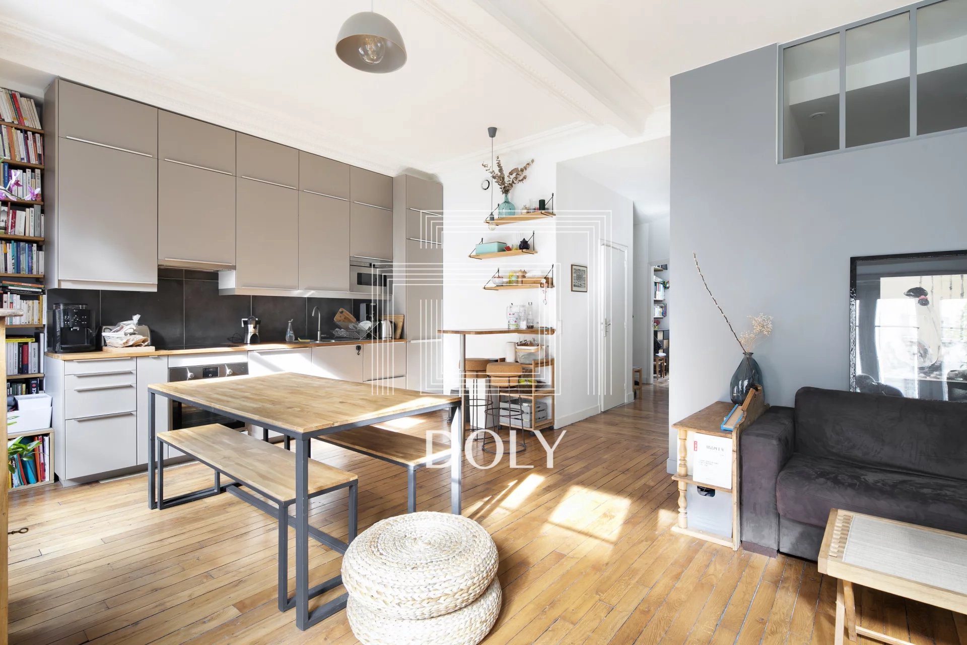 75018 // RUE ORDENER // MARCHÉ DE L'OLIVE Dans un bel immeuble des années 1920 au 2e étage avec ascenseur, appartement composé d'une entrée, un vaste séjour style loft avec cuisine américaine, 2 chambres (dont une suite parentale avec dressing), une salle de bain et…
